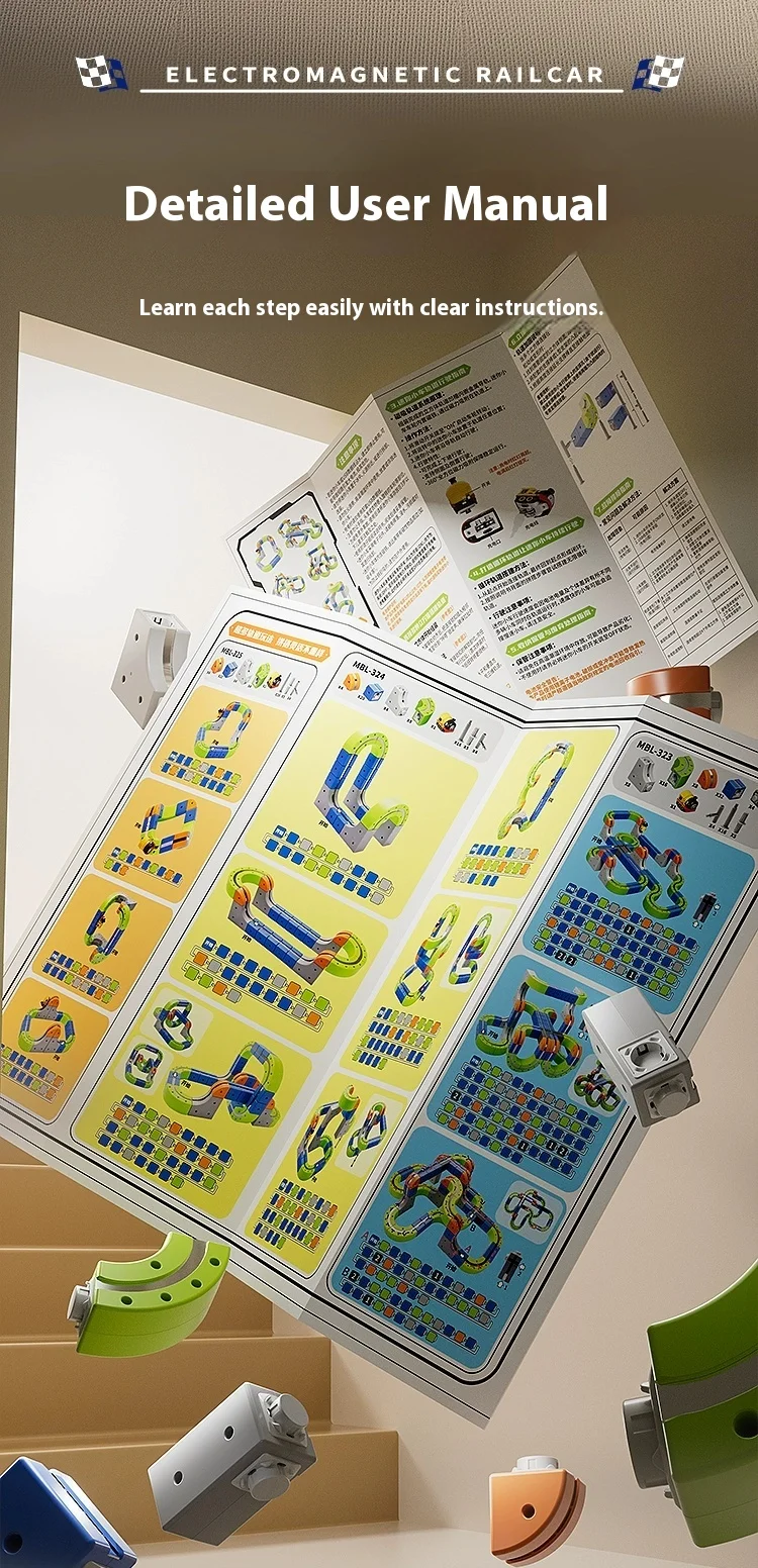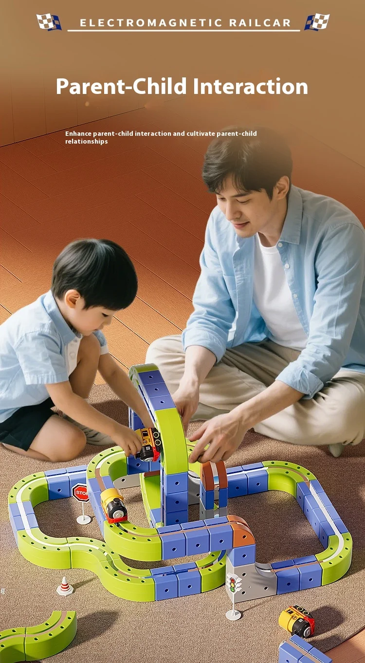 This Magnetic Stem Racing Car Railtrack Set features diecast construction with no batteries required, ensuring safe and chemical-free play. Designed for children aged 4 and up, it offers durable, high-quality components for engaging racing fun. Certified to meet safety standards, it’s an ideal choice for young enthusiasts eager to explore dynamic car racing tracks.